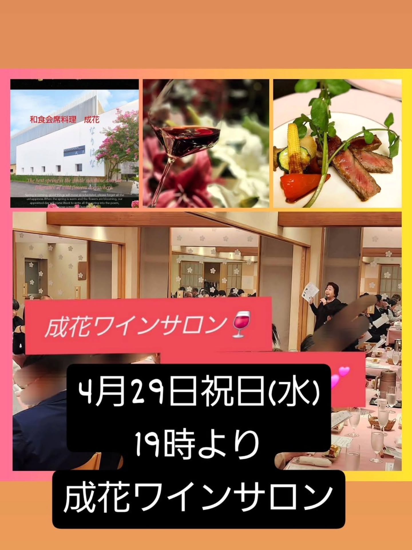 - 2026年04月01日 和食会席料理 成花4月29日祝日(水)19時より『成花ワイン…